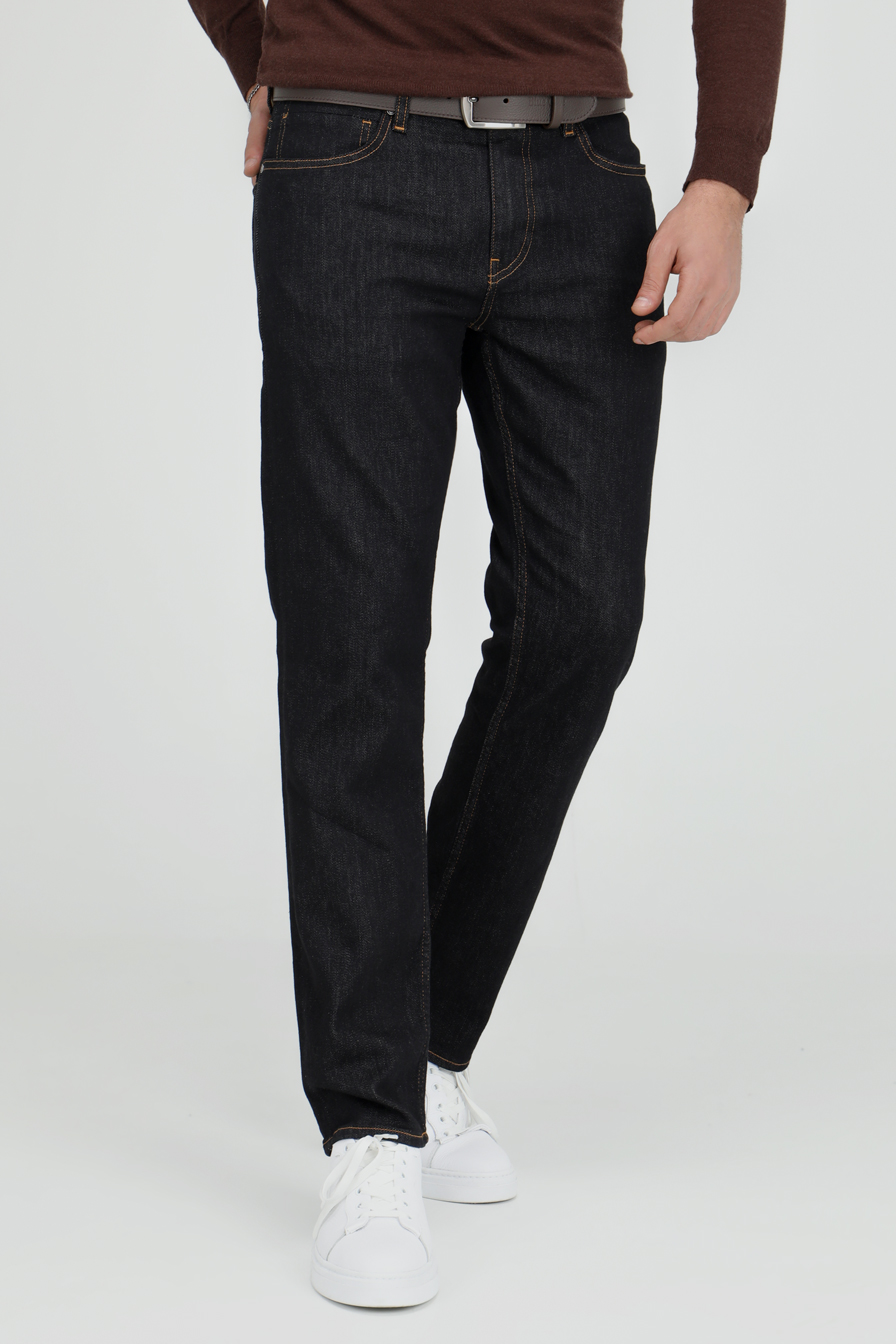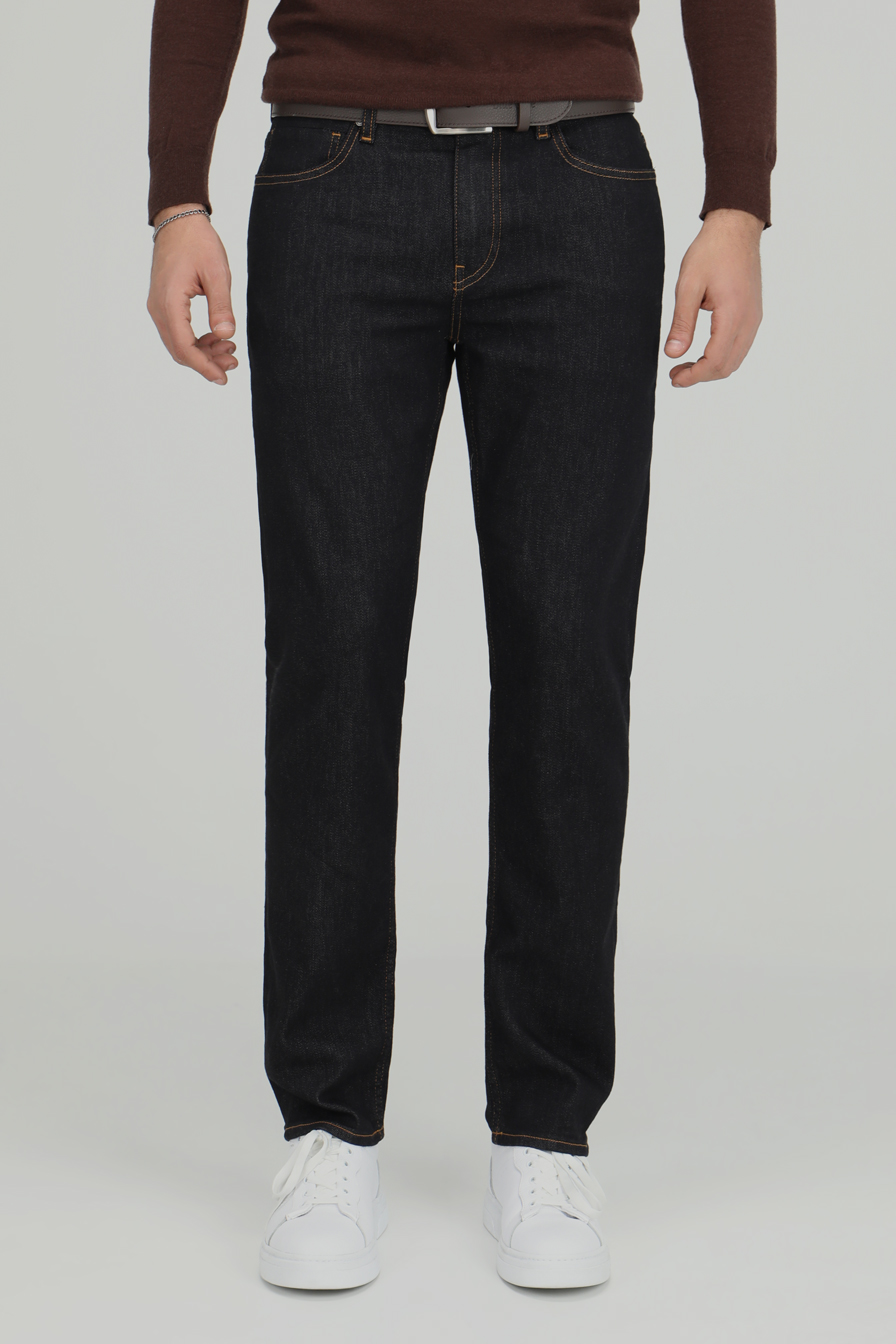 Jean coupe slim en tissu denim extensible. Cinq poches. Fermeture zip et bouton sur le devant.